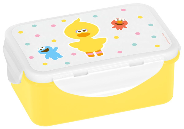 Die Brotdose klein Sesamstraße Freunde hat einen 4-seitigen Clipverschluss, der sich von Kinderhänden gut öffnen lässt. Der Deckel ist mit Bibo, Krümelmonster und Elmo von der Sesamstraße bedruckt. Die gelbe Brotdose für Kinder ist mit einer Größe von 16 x 10 x 6,5 cm ideal für den Snack im Kindergarten oder auf dem Spielplatz geeignet. Die Brotdose hält Temperaturen bis zu -20° stand. So können z.B. Mahlzeiten vorgekocht und in der Lunchbox eingefroren werden.