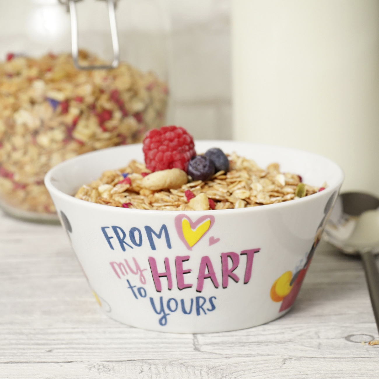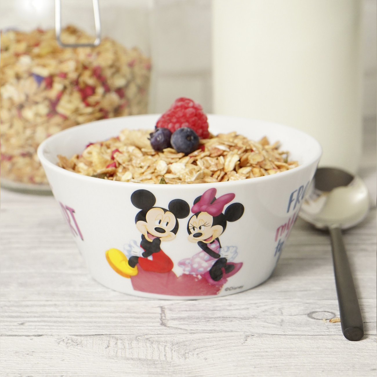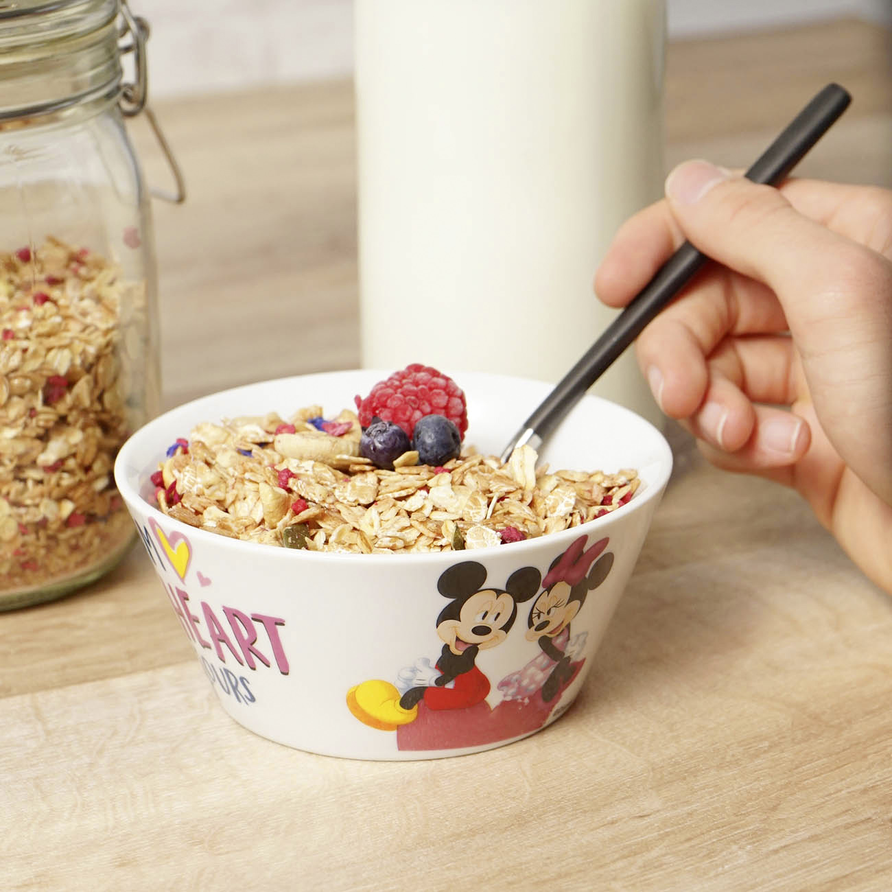 From my Heart to yours… liebe geht durch den Magen. Dann mal lieber vernünftig mit einem leckeren Frühstück und unserer Mickey my Heart Frühstücksschale in den Tag starten.