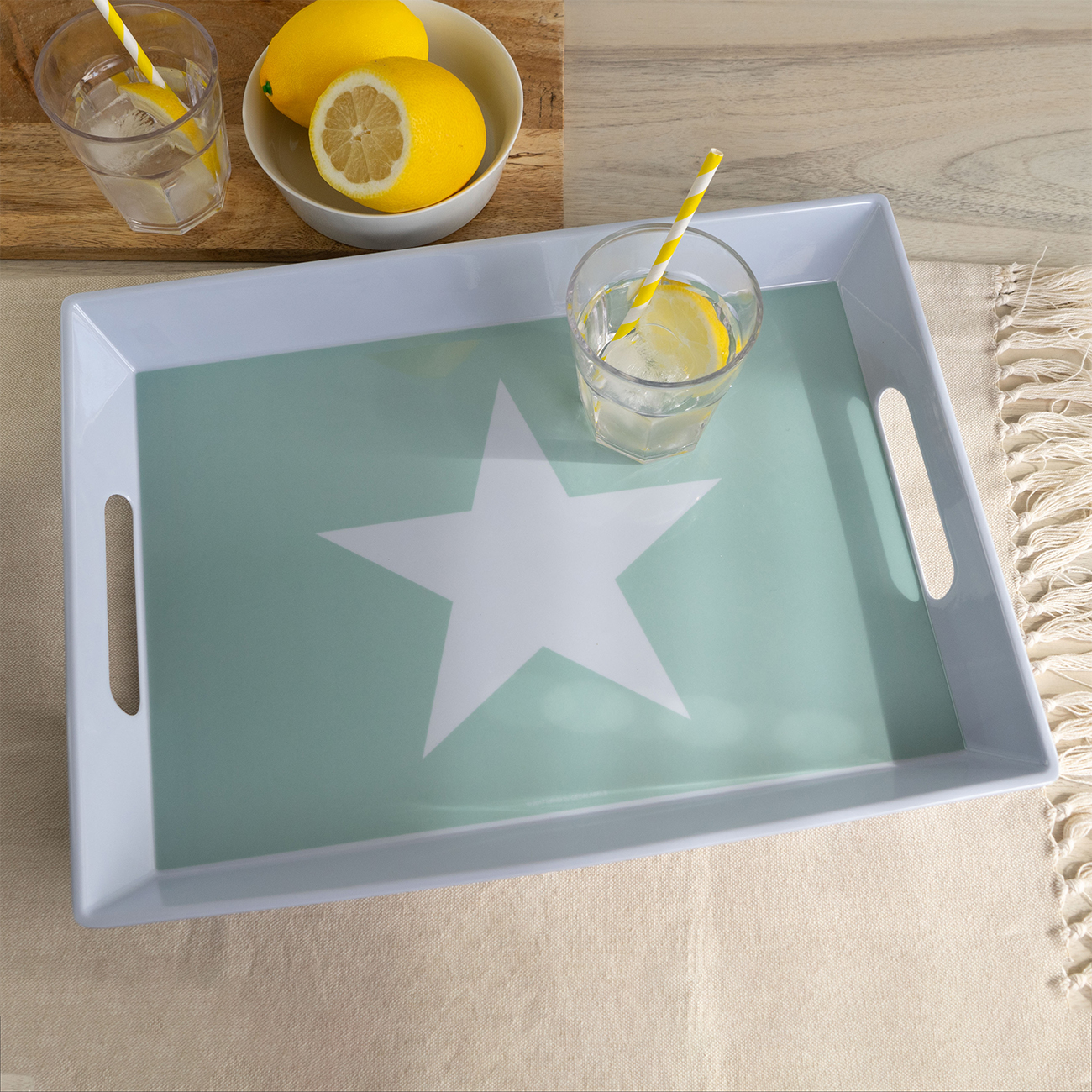 Weiterführende Links zu "Tablett Stern türkis 41x30x5cm"