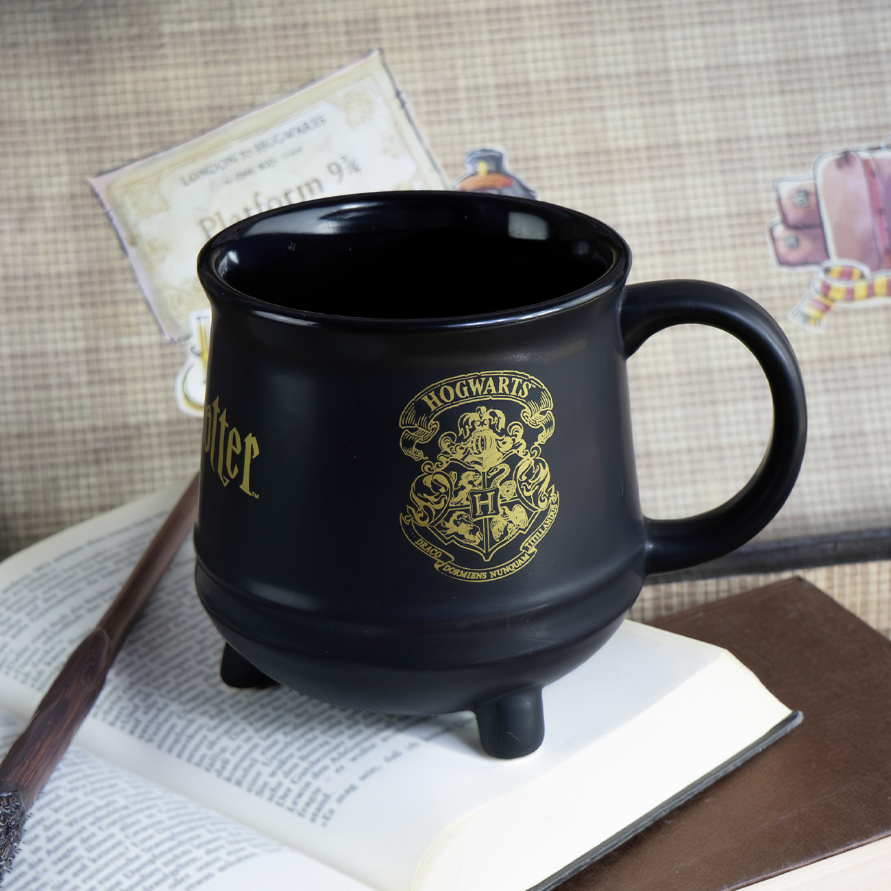 Die 3D Tasse Harry Potter Hogwarts Wappen Kesseldesign ist perfekt für dein magisches Lieblingsgetränk. Das originelle Kessel Design mit dem Schulwappen von Hogwarts und dem Harry Potter Schriftzug zieht garantiert alle Blicke auf sich. Für Heißgetränke und magisches Gebräu ist das Trinkgefäß aus Keramik bestens geeignet, nur den Kontakt mit der Spülmaschine und der Mikrowelle sollte man meiden. - Es wäre doch schade, wenn diese zauberhafte Tasse ihre magische Aura verliert.