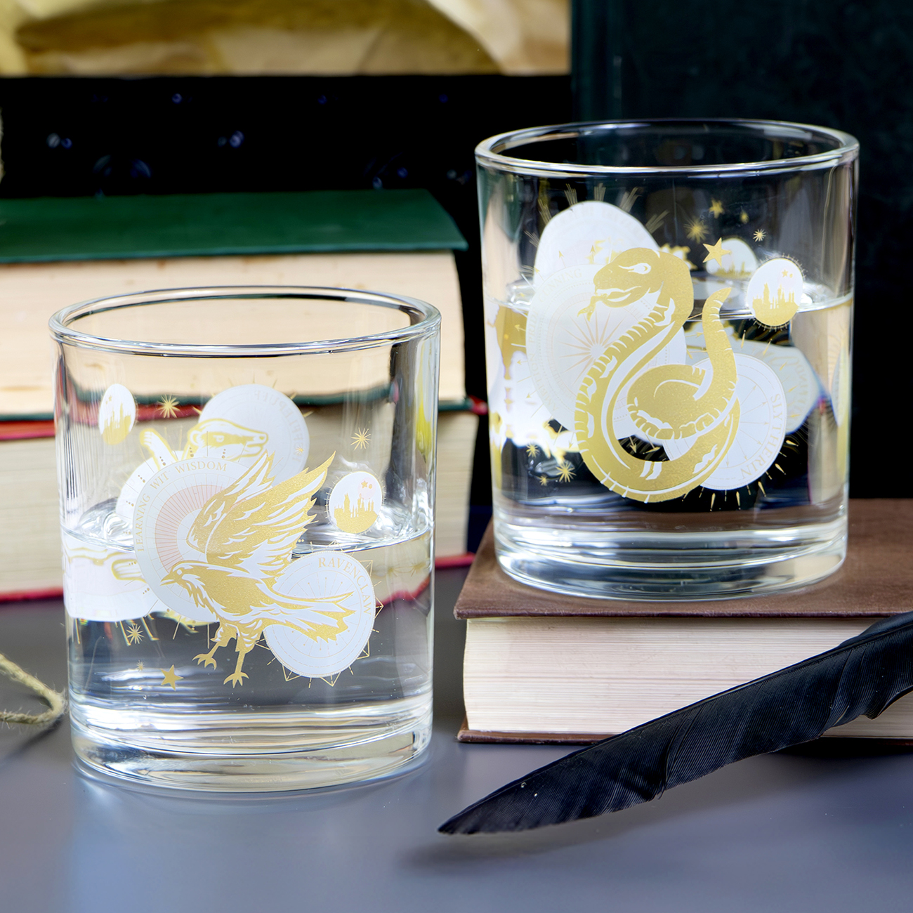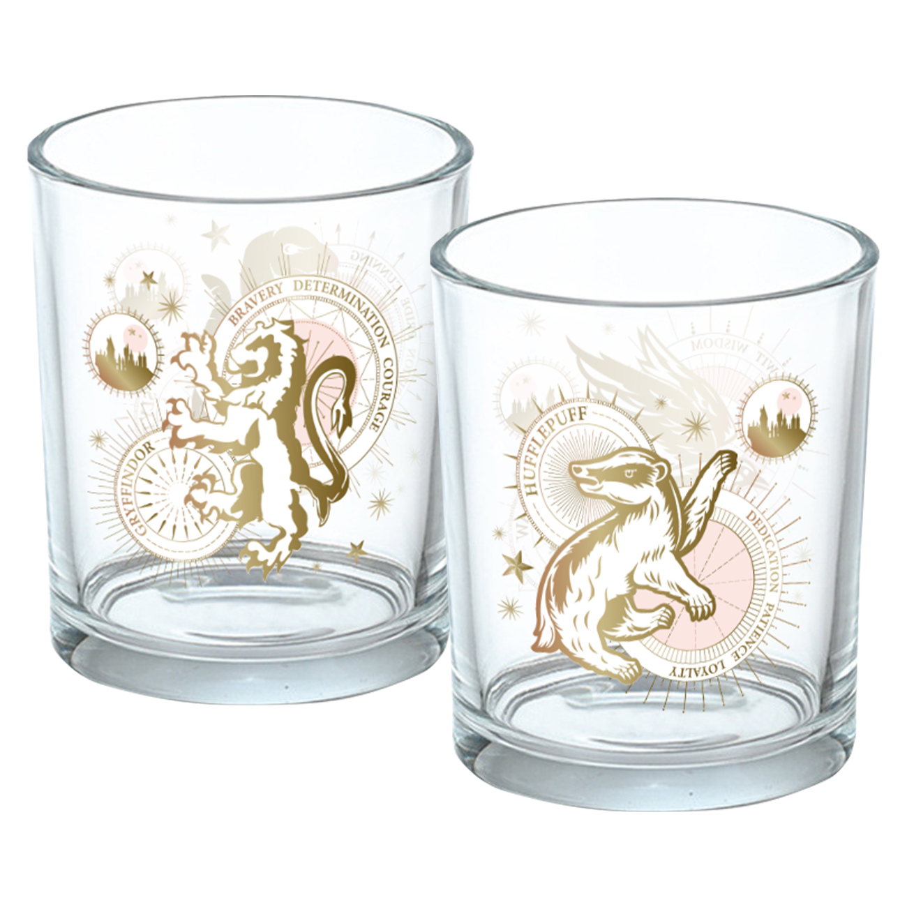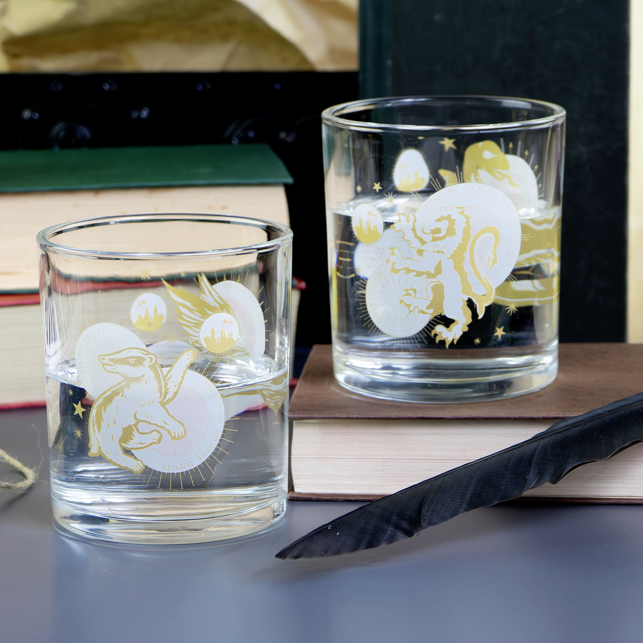 Das Trinkglas-Set Harry Potter Mystische Wappentiere nimmt einen mit auf eine Reise in die Zaubererwelt. Auf diesen zwei bedruckten Trinkgläsern kann man die Wappentiere der 4 verschiedenen Zaubererhäuser von Gryffindor, Ravenclaw, Hufflepuff und Slytherin entdecken. Mit einem kräftigen Schluck aus den Trinkgläsern mit einem Fassungsvermögen von je ca. 400ml fühlt man sich mitten hineinversetzt in die zauberhaften Abenteuer von Harry Potter und seinen Freunden Ron und Hermine. Die geraden Trinkgläser sind bestückt mit einem Teelicht auch fantastische Tischlichter für einen magischen Abend unter Freunden.