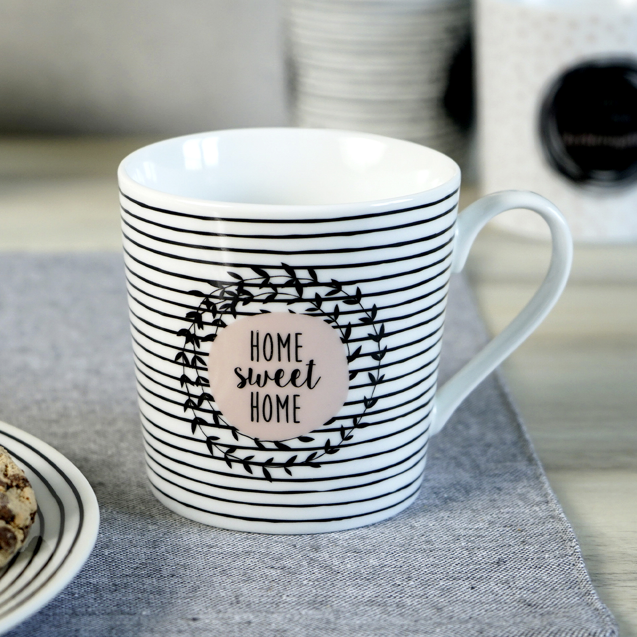 Die Tasse Home sweet Home 350ml bezaubert mit ihrem feinen Rankendesign. Die liebevoll gestaltete Tasse ist spülmaschinen- und mikrowellengeeignet und dadurch äußerst pflegeleicht. Bei einer Tasse Tee oder Kaffee kann man so ganz entspannt sein gemütliches Zuhause genießen.